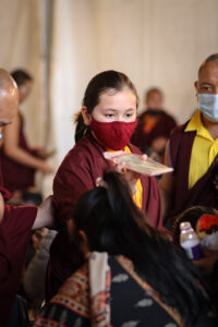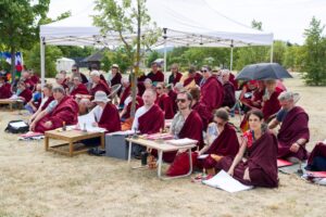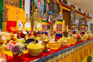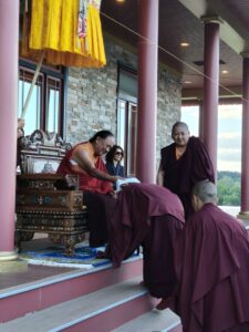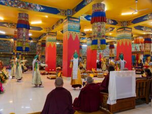 Het hele jaar door hebben Minling Jetsün Khandro Rinpoche, Jetsünla, Mindrolling-monniken, nonnen van Samten Tse en leden van de Mindrolling International sangha onvermoeibaar de tempel voorbereid en alle noodzakelijke heilige representaties, rituele artikelen en zuivere offergaven verzameld voor het naderende consecratie-ritueel, of rabne in het Tibetaans.