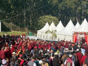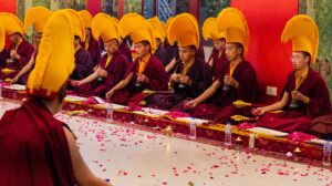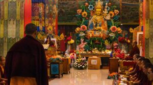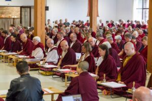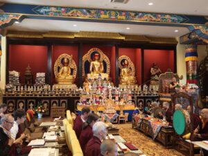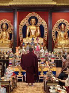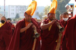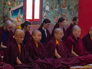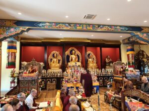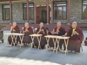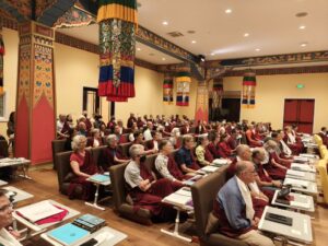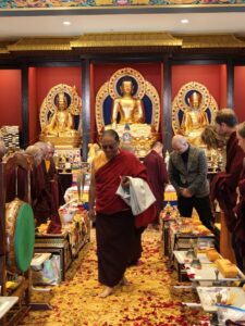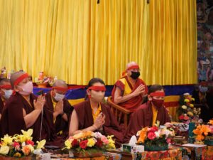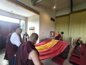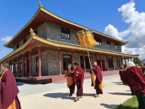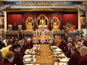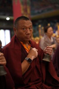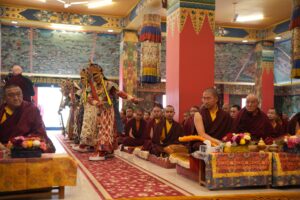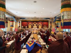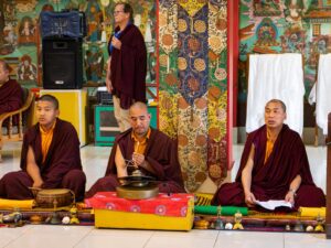 Op de derde dag van het Tibetaanse nieuwe jaar, 2 maart 2025, werd door de sangha in Mindrolling de Rigdzin Thugthig Tshog (het feest van de Hartessentie van de Vidyadharas) beoefend, ter gelegenheid van de parinirvana van de 11e Mindrolling Trichen.