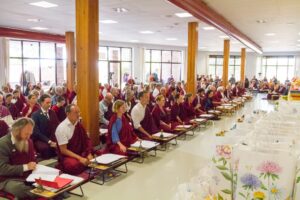In juli kwamen Mindrolling International sanghaleden uit heel Europa en daarbuiten bijeen voor de jaarlijkse Vajra Assembly in Tsjechië. Stafleden van Mindrolling International en talloze sanghaleden kwamen vroegtijdig aan voor alle voorbereidingen en het opzetten van de mandala voor alle studenten die kwamen om de leringen en transmissies te ontvangen. Tijdens deze maandlange retraite gaf Minling Jetsün Khandro Rinpoche diepgaande en uitgebreide leringen en transmissies van deze lopende cyclus van kerninstructies, en studenten legden zich volledig toe op de beoefeningen. Beoefenaars uit vele verschillende landen konden allemaal de directe teachings ontvangen dankzij de ijver en inzet van het bekwame team van vertalers, dat alle teachings en beoefeningessies tegelijkertijd in zes verschillende talen vertaalde. Door contuïteit van retraite, beoefening en studie, zijn de leden van de Vajra Assembly toegewijd gebleven op het pad van de Dharma, met vreugde en oprechte aspiraties dat hun verwezenlijking van de Dharma ten goede mag komen aan oneindig veel levende wezens.