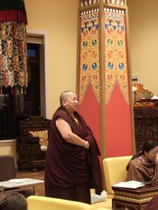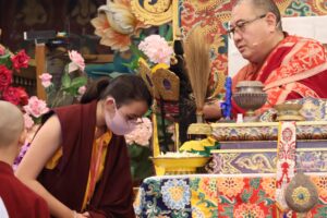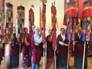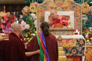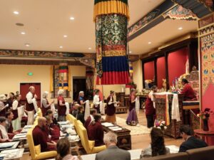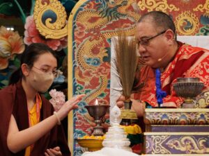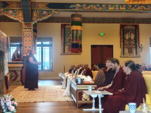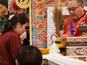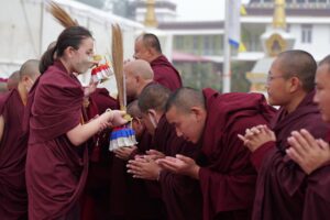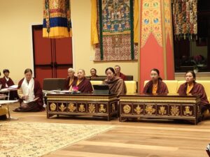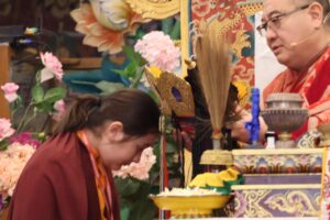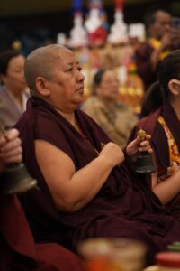 Tijdens de Kama-transmissie in december vierde de sangha vreugdevol de verjaardag van Minling Jetsün Rinpoche met gebeden, mandala’s en aspiraties voor een lang leven en de voortdurende activiteit van de 13e generatie van de Mindrolling-overleveringslijn. Jetsun Rinpoche en haar broer Dungse Rinpoche blijven inspireren en grote hoop geven voor het behoud van de authentieke dharma voor komende generaties.