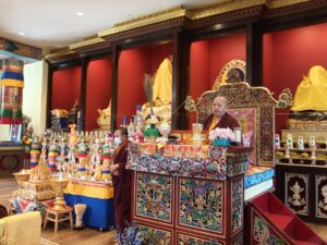 Op 19 augustus werd de verjaardag van Kyabje Minling Jetsün Khandro Rinpoche gevierd met een uitgebreide offergaven van mandala en van lichaam, spraak en geest. Met oprechte devotie was de sangha vervuld van vreugde toen ze bijeenkwamen voor Rinpoche’s verjaardag in de nieuw ingewijde tempel.